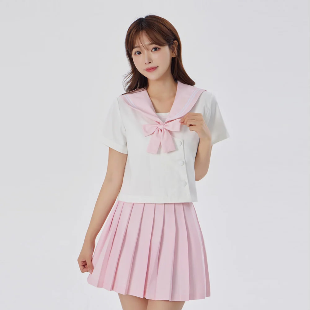 베이비핑크 화이트 두줄라인 세라복 세트 (반팔) 교복.