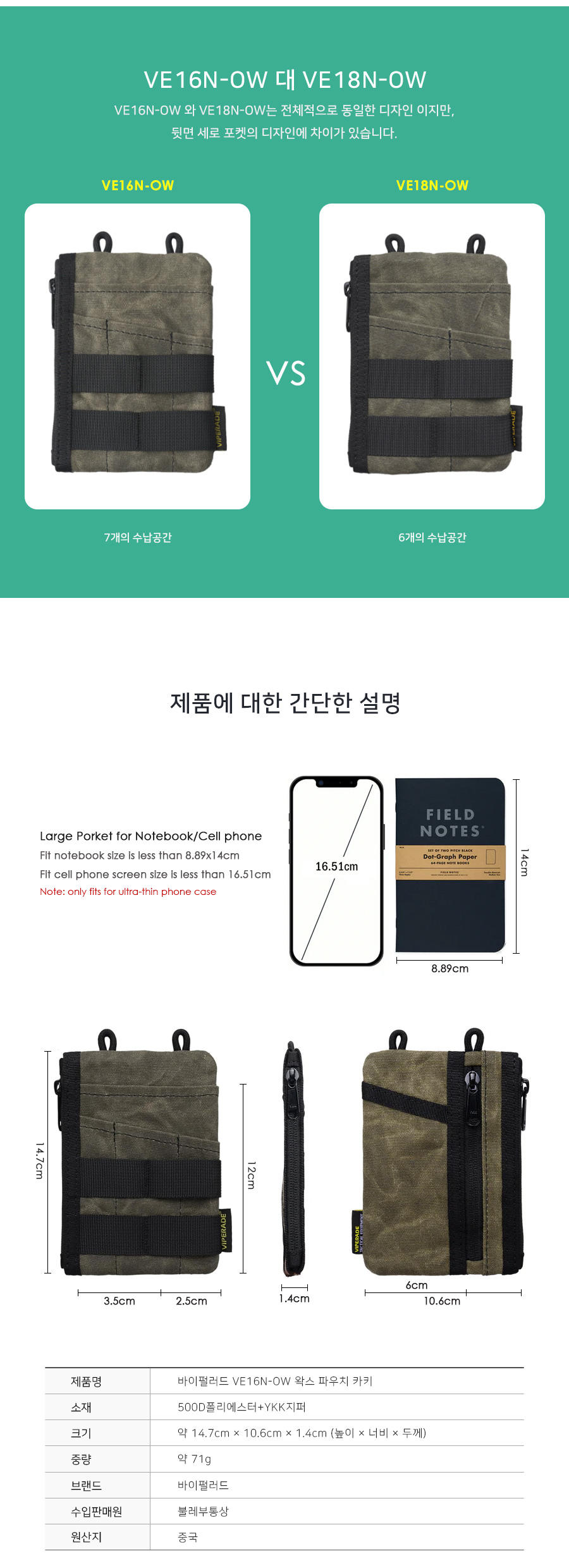 바이펄러드 VE16N-OW 왁스 파우치 카키