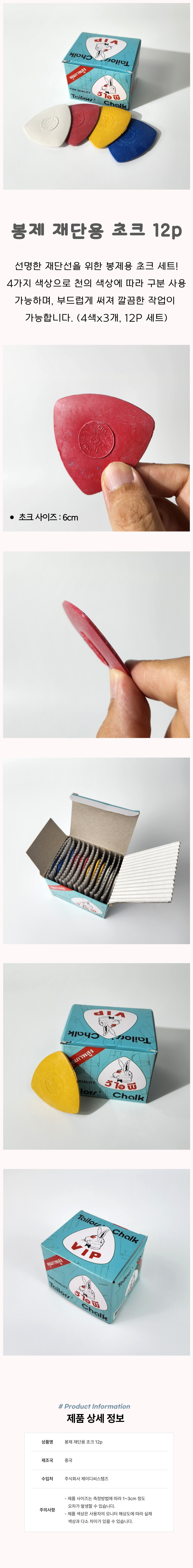 컬러 초크 12p 봉제용 재단 미싱 수선