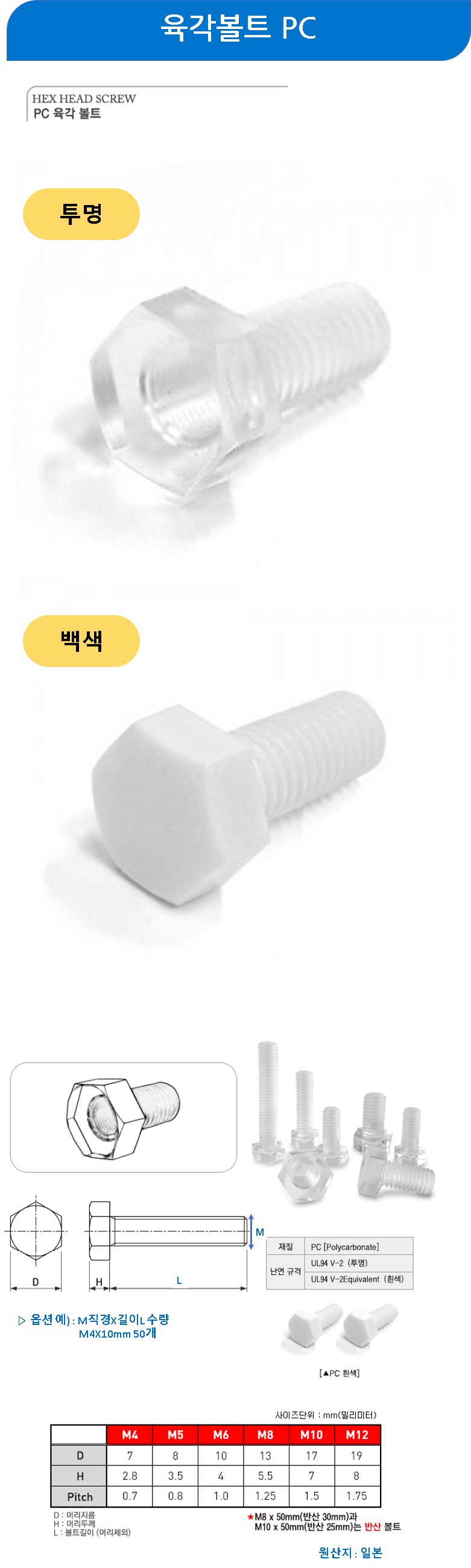 육각볼트 PC 투명 M8x30mm 50개