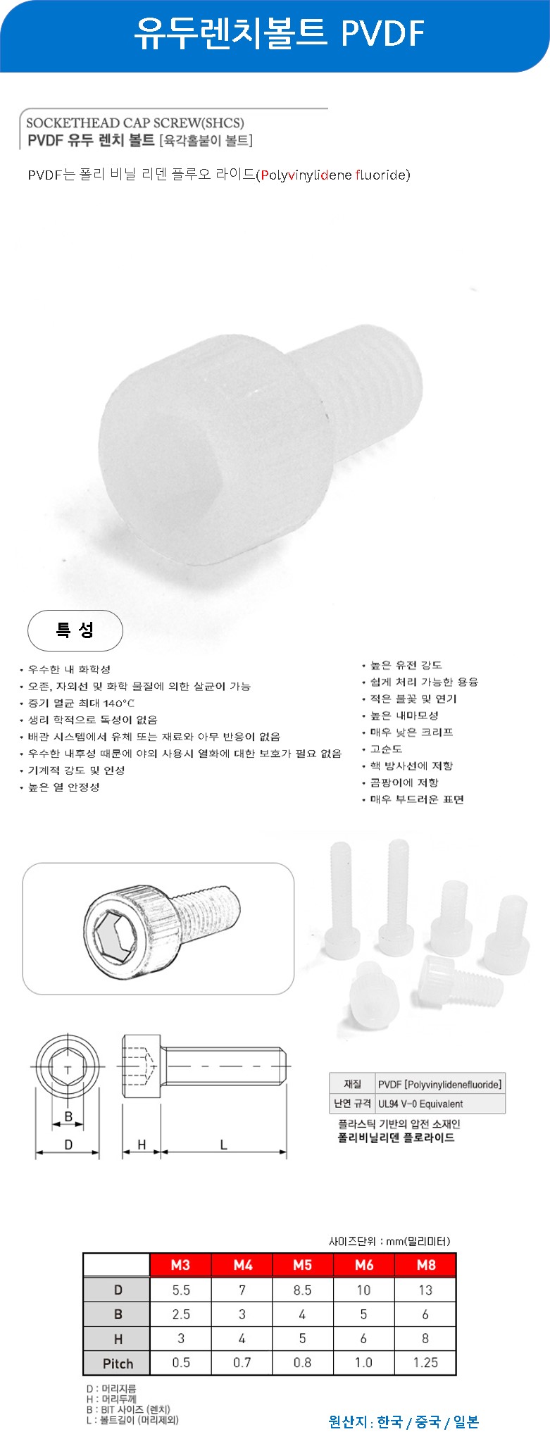 유두 렌치볼트 PVDF 반투명 M6x20mm 20개(일본산)