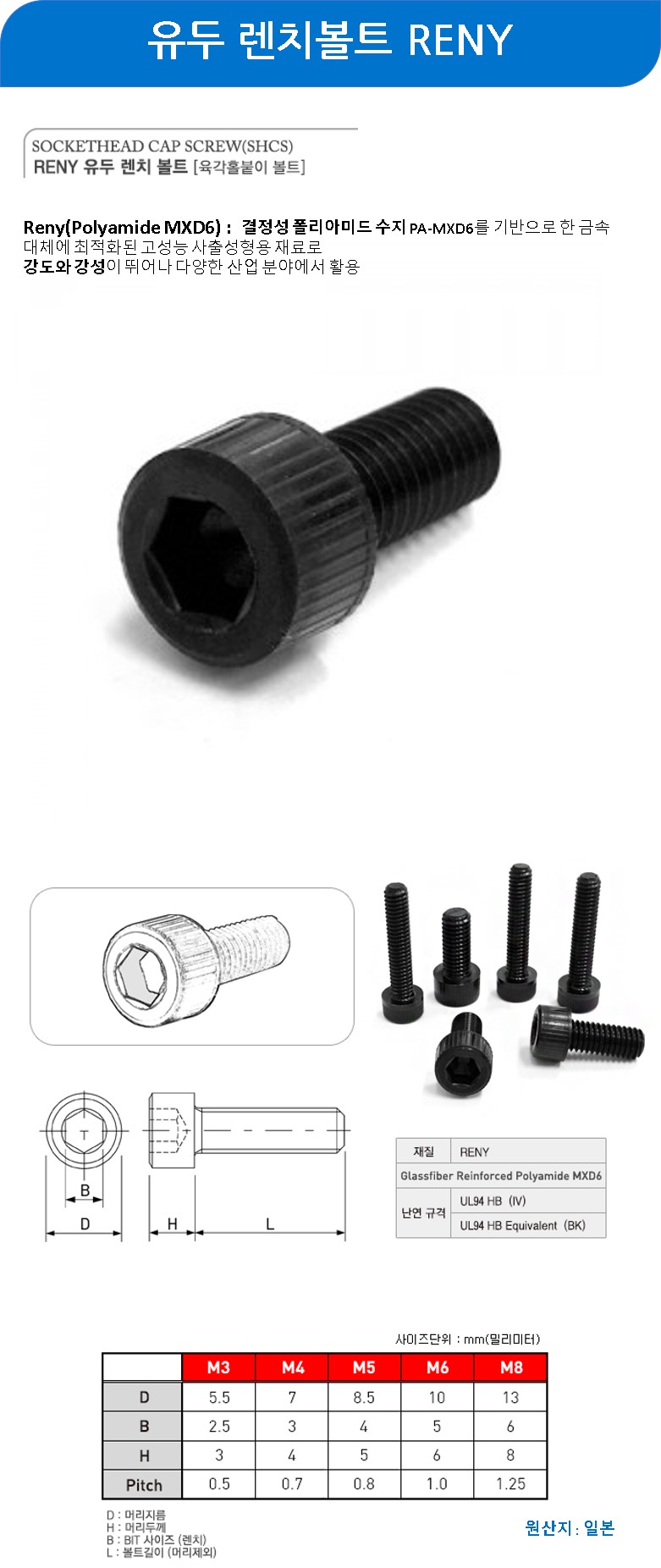 유두 렌치볼트 RENK 흑색 M5x12mm 100개