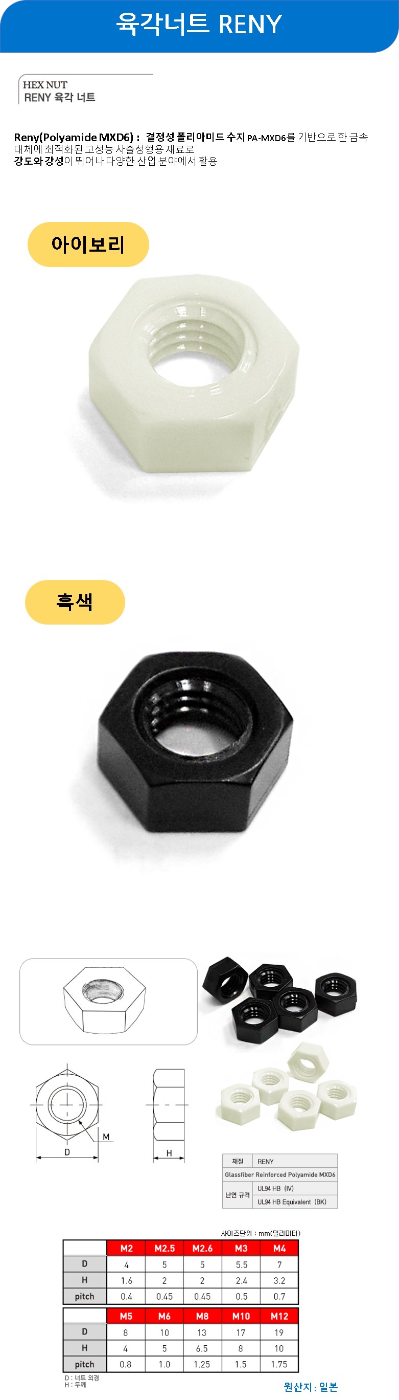 육각너트 RENK 흑색 M4 100개