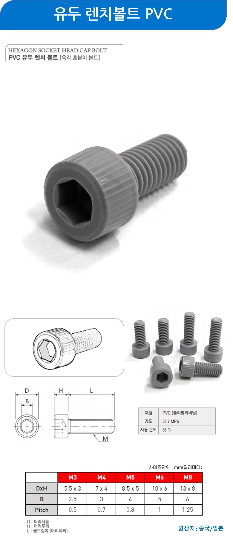 유두 렌치볼트 PVC 회색 M5x12mm 50개(일본산)
