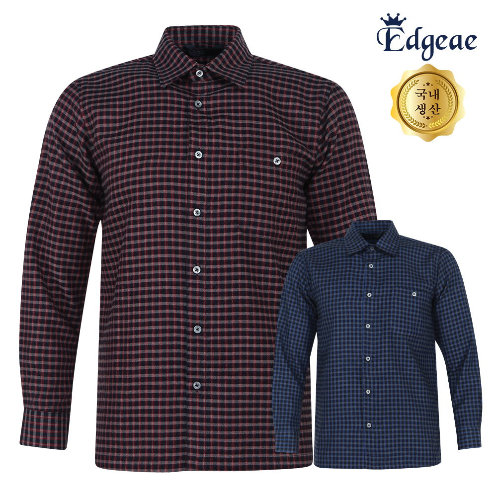 엣지애 남성 봄가을 체크 풀오픈 카라셔츠 MCTF5DJ5570