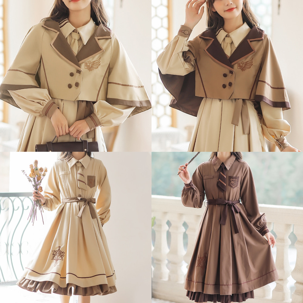 (대여)단정한 여자 프렌치 긴팔 케이프 원피스 세트.
