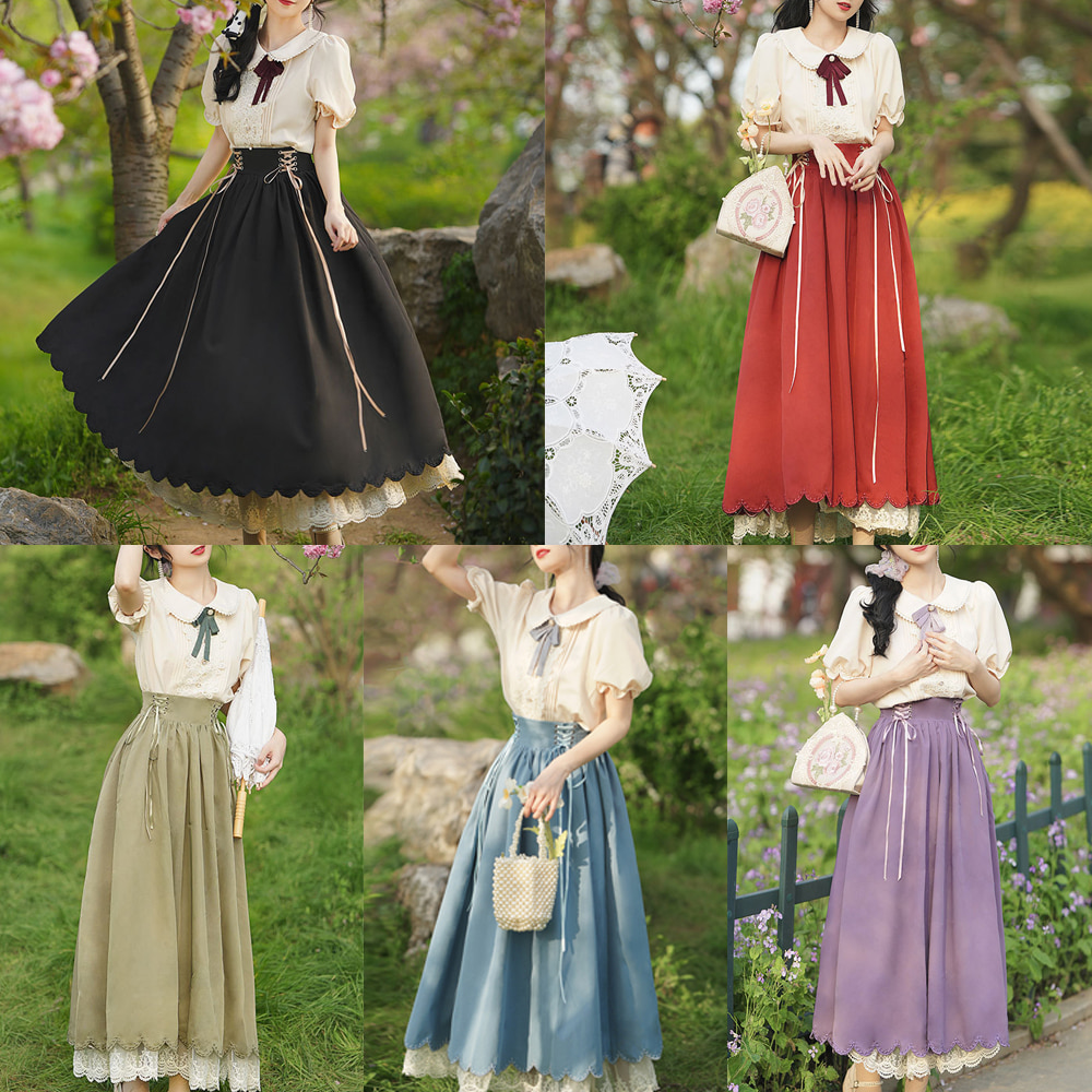 유럽풍 프랑스 반팔 코스프레 전통의상 세트.