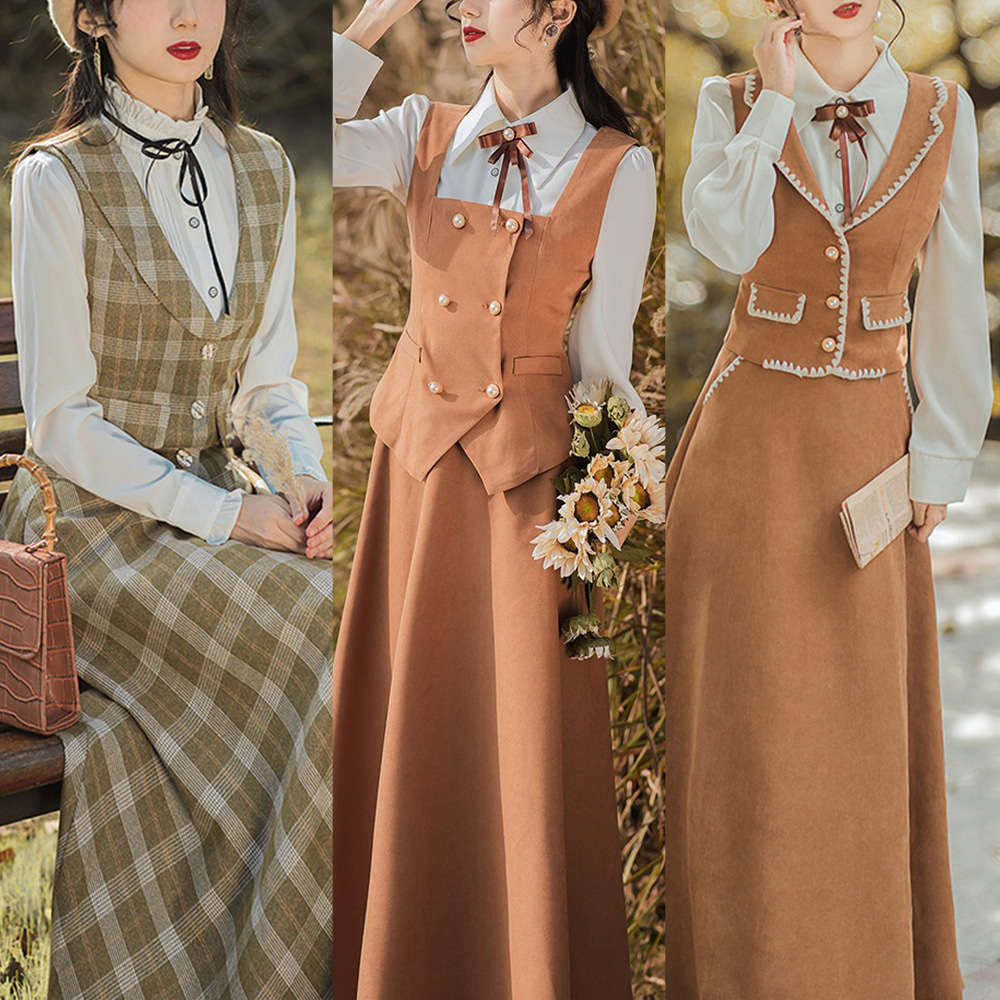 빈티지 쓰리피스 경성의상 세트(조끼 셔츠 치마) 교복.