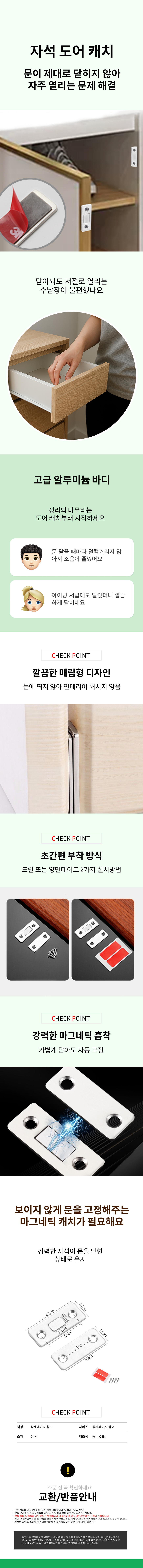 마그네틱 도어 캐치 고정장치 무타공 서랍 문닫힘