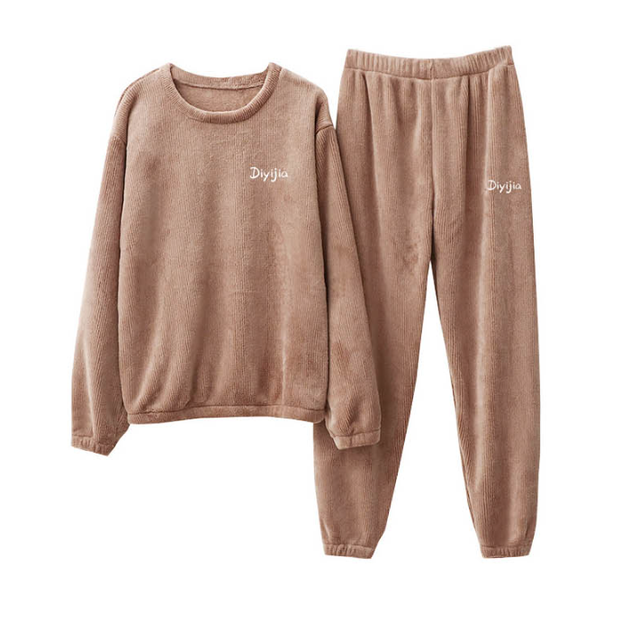 발목 소매 조거 디자인 홈웨어 극세사 긴팔 세트