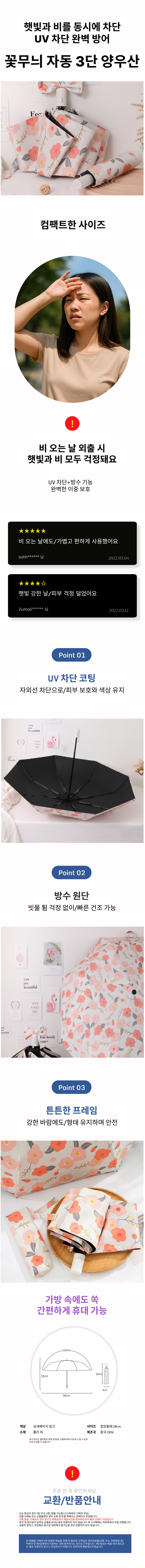 우산 양산 겸용 초경량 꽃무늬 자외선차단 3단 자동