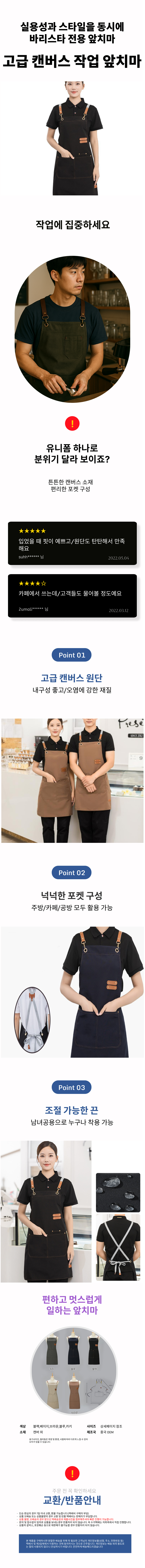 작업 앞치마 카페 목공 주방 미술 고급원단 포켓