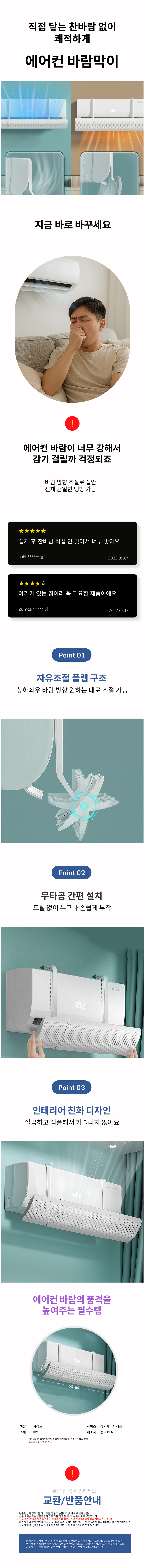 에어컨 바람 무풍 균일하게 바람막이 순환가드 날개