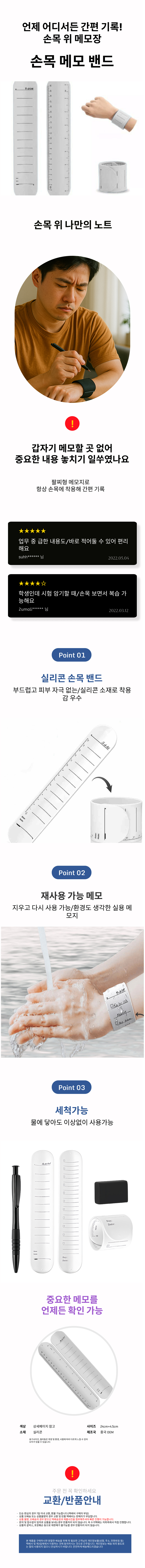 간편메모 손목메모 스케쥴 재사용 팔찌 메모밴드 1P