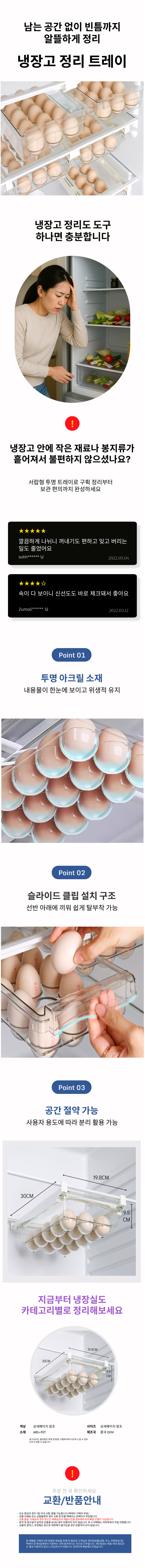 서랍형 슬라이딩 에그박스 계란통 냉장고정리 트레이