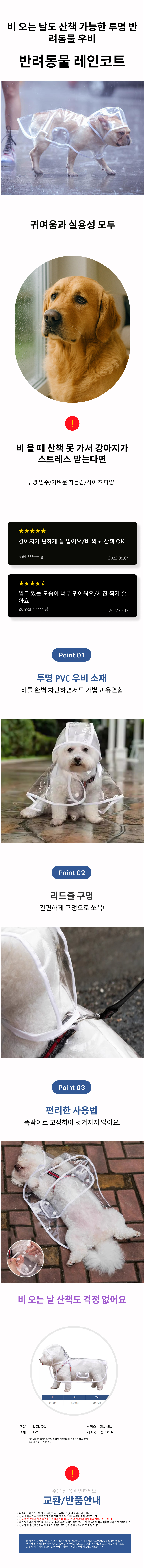 강아지 비옷 레인코트 판초 개비옷 소형견 투명 산책