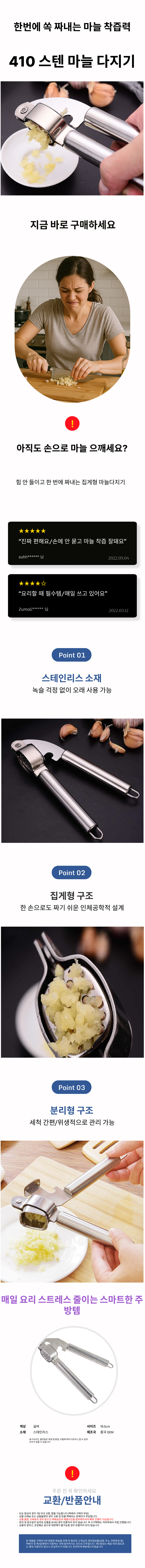 스텐 마늘 다지기 으깨기 절단 빻기 분쇄 손잡이형