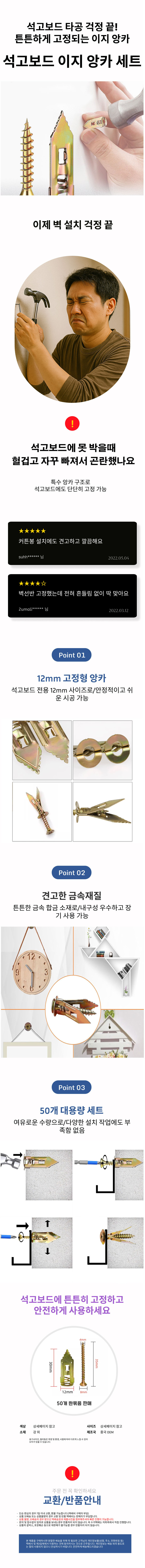 석고보드 피스 못 50개 세트 가벽 이지 앙카 볼트