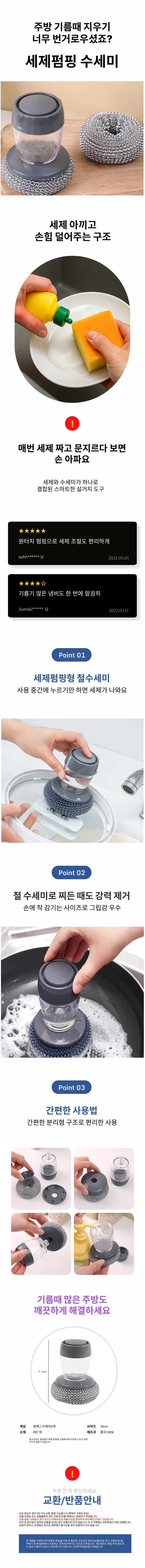 세제펌핑 수세미 일체형 주방 청소용품 주방꿀템