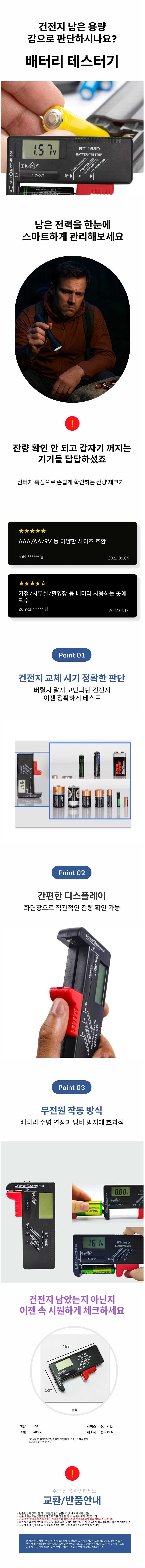 배터리 잔량 테스터기 건전지 체크 AAA 무전원 AA
