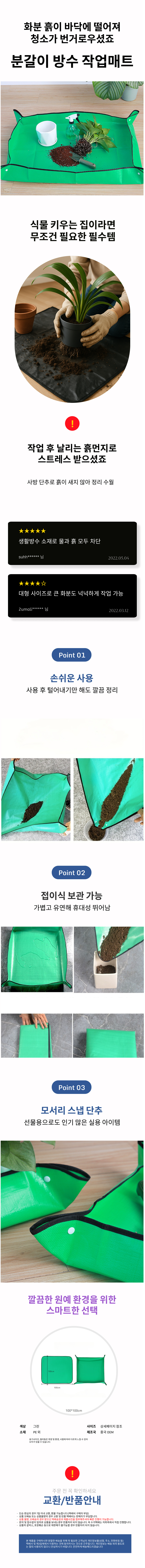 분갈이 방수 작업매트 모래 흙 오염깔판 원예매트