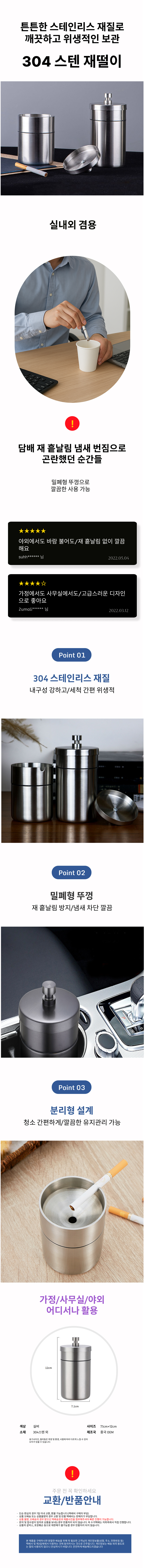 심플 스텐 뚜껑형 재떨이 자동차 실내 냄새차단 담배