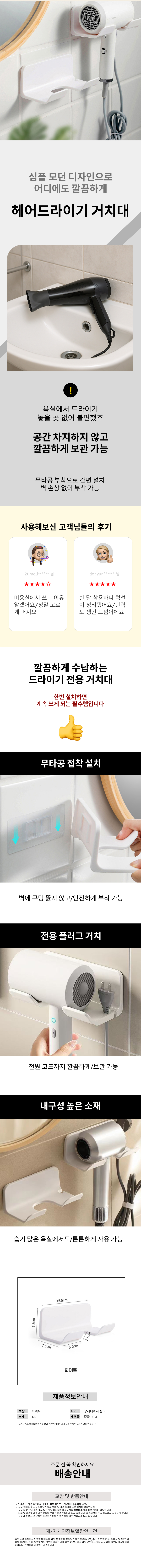 드라이기 걸이 거치대 무타공 부착식 플러그 선정리