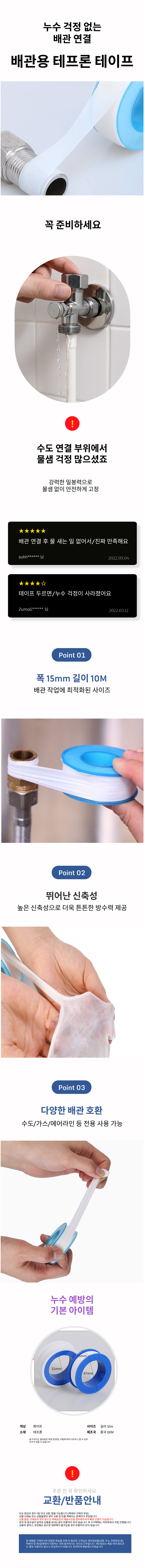 배관 테프론 테이프 배관누수 수도열결 동파방지 10m