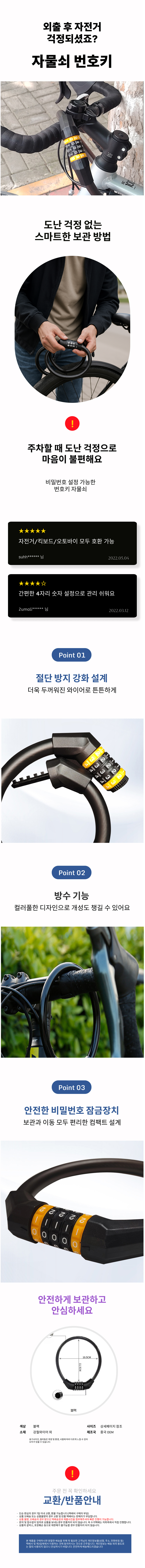 자전거 킥보드 잠금 자물쇠 안전보관 번호키 방수