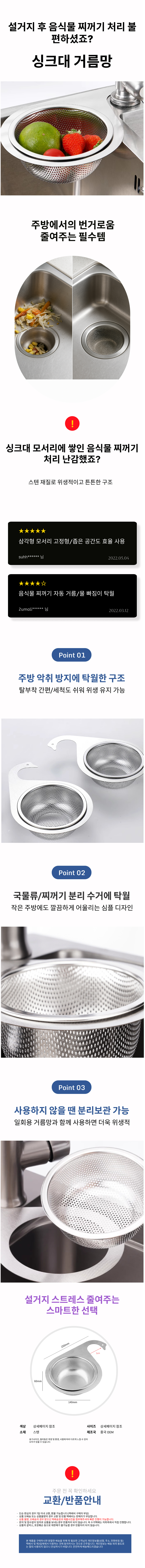 스테인리스 음식물 거름망 걸이형 배수망 코너 물빠짐