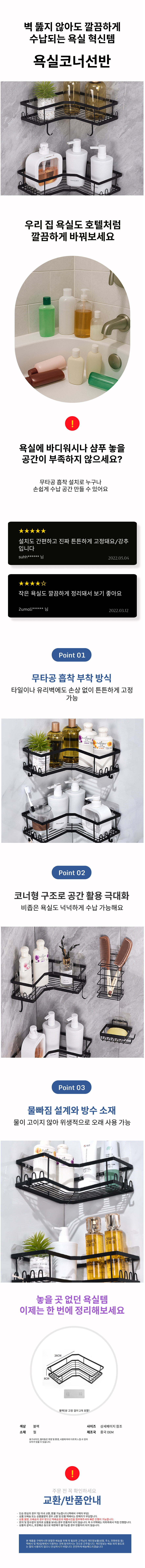 붙이는 코너선반 물빠짐 욕실 주방용품 정리 수납