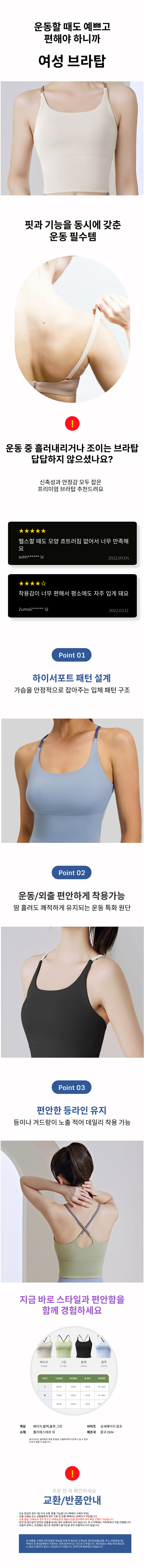 헬스 요가 브라탑 편안한 등라인 운동복 탄탄한 핏