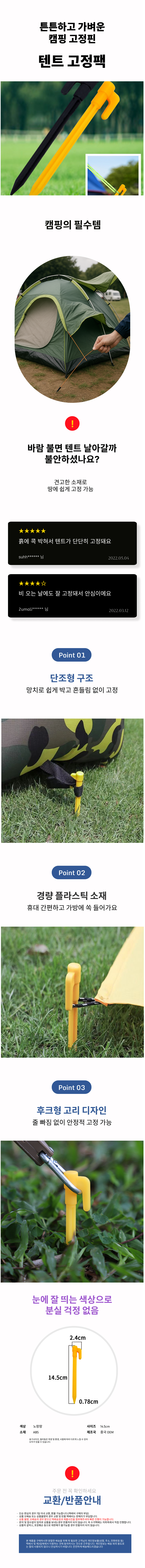 텐트고정핀 고정못 지면고정 캠핑 로프고정 휴대용