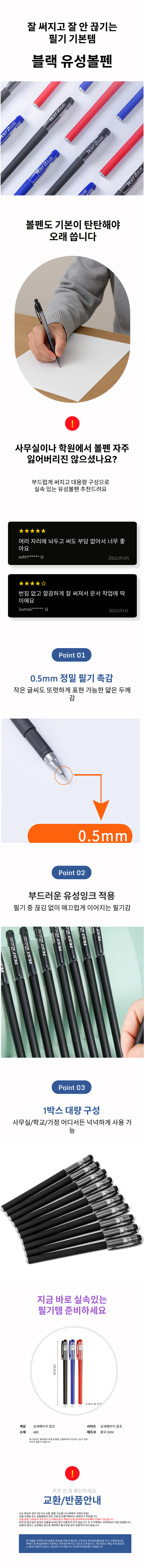 부드러운 필기감 블랙 유성볼펜 0.5mm 한박스 구성
