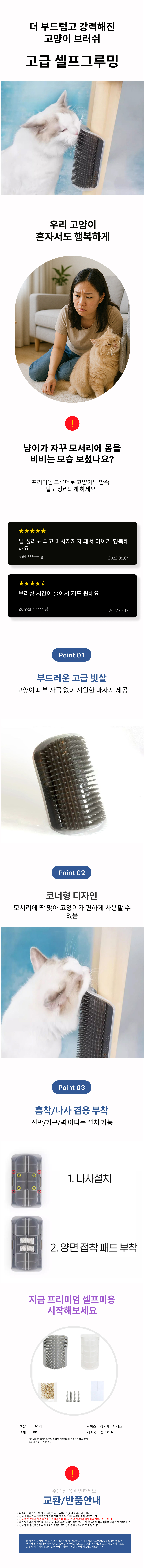 반려묘 엉킨털 셀프브러쉬 그루밍 모서리 부착 그루머