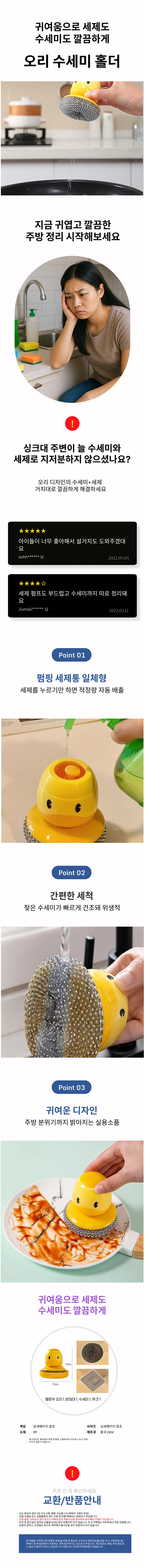 세제통 수세미 일체형 원터치 펌핑 설거지 철수세미