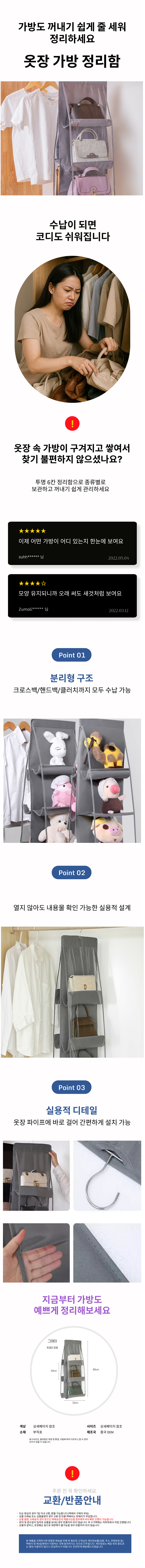 옷장속 가방 정리함 투명 폴딩 6칸 공간활용 먼지방지