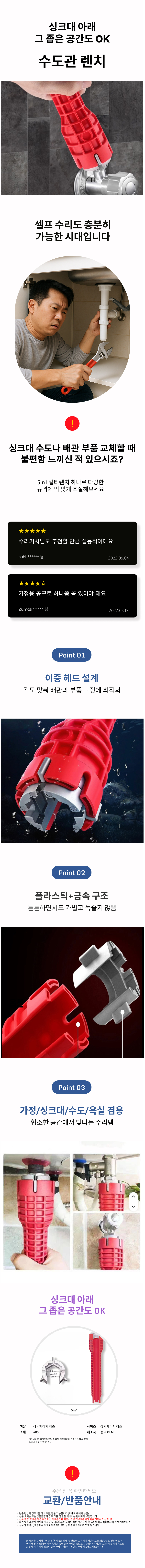 5in1 멀티렌치 수전 수도관 셀프수리 교체 만능렌치