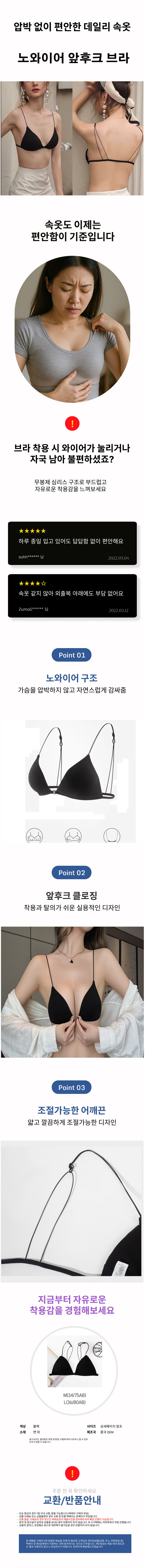노와이어 앞후크 브레지어 무봉제 길이조절 브라