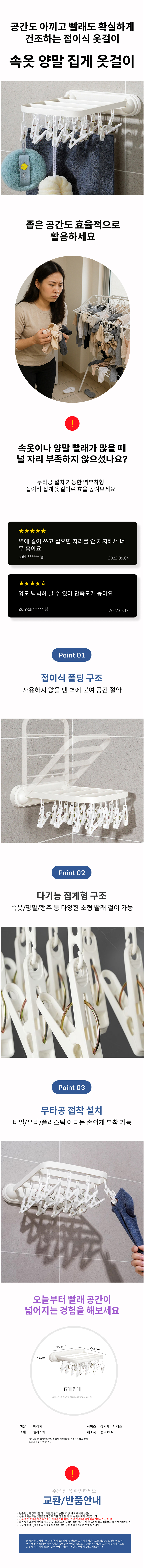 집게 옷걸이 건조대 속옷 양말 무타공 벽부착 세탁실