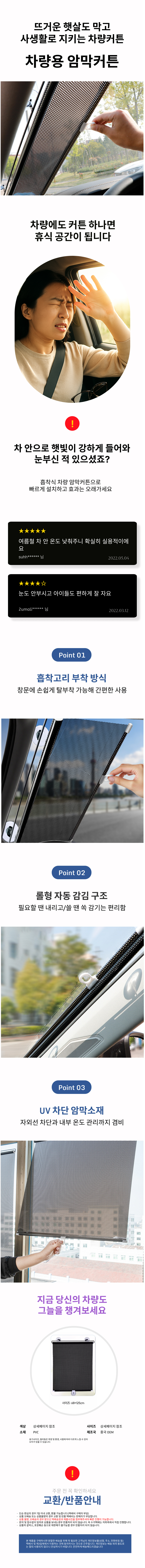흡착식 차량용 롤 암막커튼 햇빛가리개 자외선차단