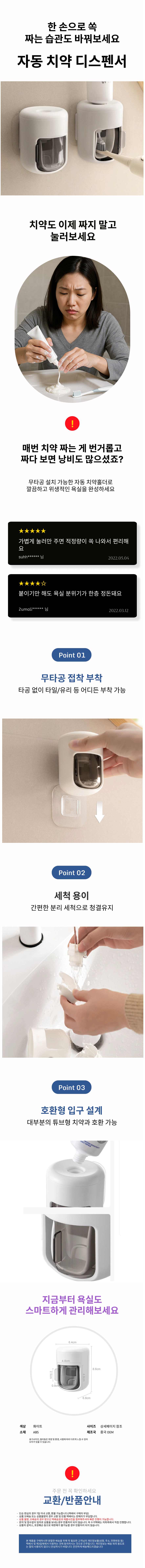 자동 치약짜개 디스펜서 원터치 편리한 치약 절약템