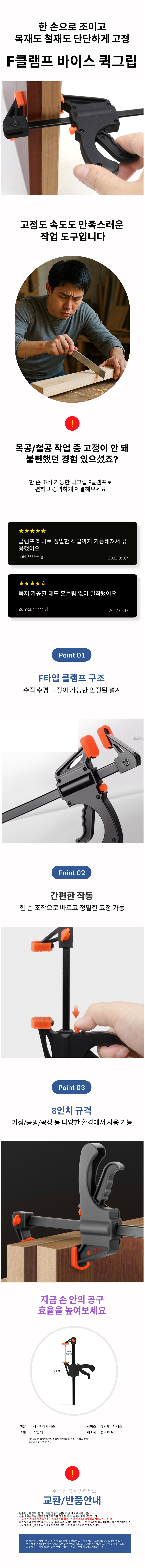 목재 작업용 F타입 클램프 8인치 바이스 퀵그립