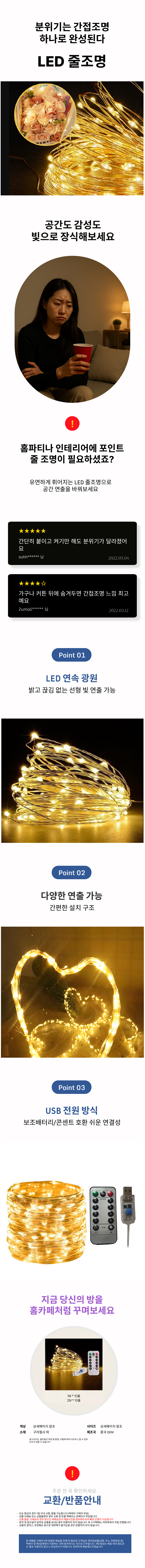 LED 줄조명 리모컨 줄네온 캠핑 벽트리 USB 홈파티
