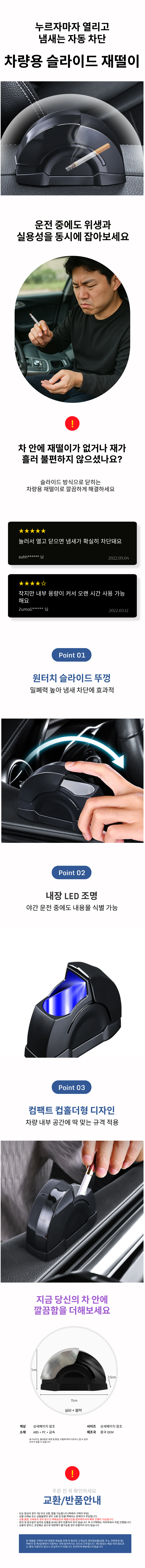 차량용 슬라이딩 원터치 재떨이 냄새차단 재날림 위생