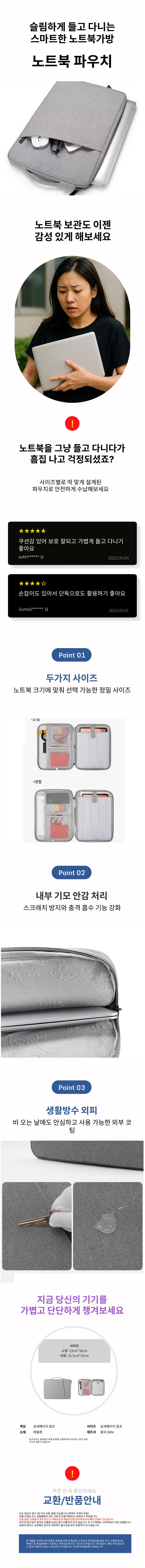 노트북 파우치 생활방수 기모안감 스크레치 보호