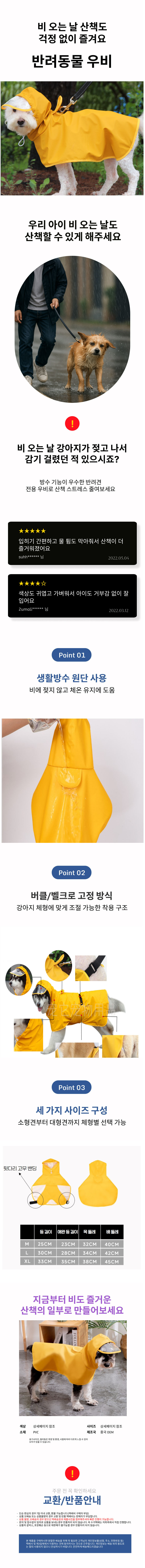 비오는날 강아지 산책용 비옷 애견우의 우비 레인코트