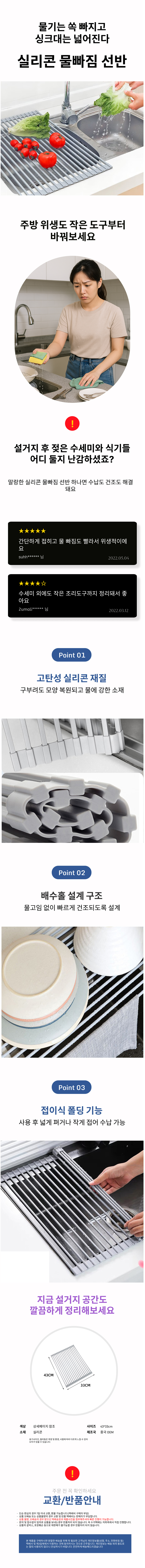 실리콘 물빠짐선반 접이식 그릇 식재료 깔끔 주방용품