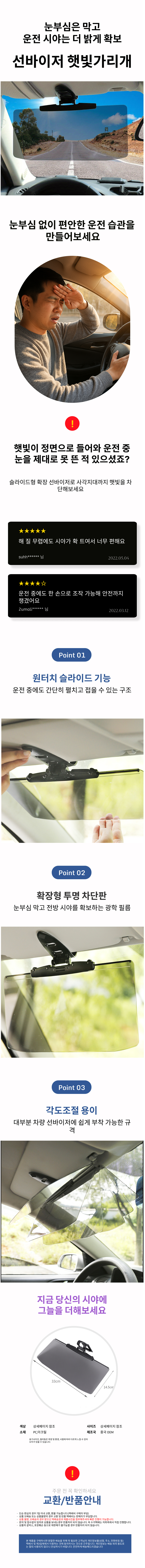 차량용 선바이저 원터치 차단판 눈부심방지 시야확보