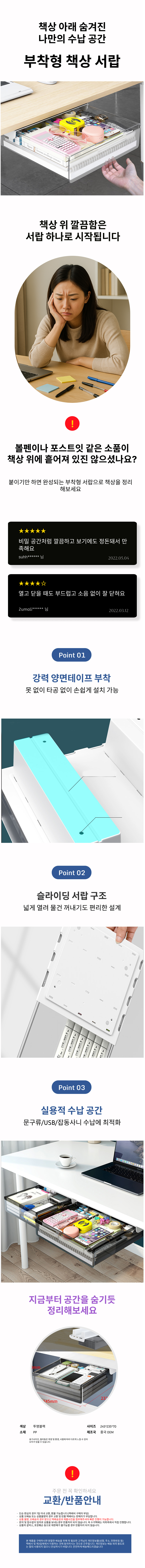 책상아래 부착형 슬라이딩 서랍 소품정리 공간활용